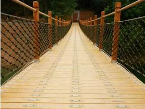 木質吊橋在選擇鋼絲繩的時候,選擇不當也會帶來不必要的影響,嚴重的還是會危機生命安全,像這種長期工作在露天、潮濕、腐蝕等環境下的,鋼絲繩一定要選擇鍍鋅鋼絲繩,不容易損壞或者斷裂,安全系數比較高,而且不容易旋轉和松動。