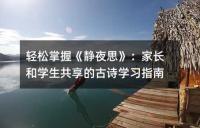 輕松掌握《靜夜思》:家長和學(xué)生共享的古詩學(xué)習(xí)指南