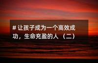 # 讓孩子成為一個高效成功,生命充盈的人 (二)